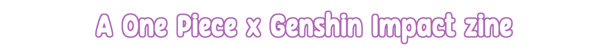 A: This is a Genshin Impact X One Piece multifandom fanzine that will be featuring works around the concept of One Piece characters mooring on Teyvat and meeting the different Genshin Impact characters, discovering the different nations, foods, cultures…Q: Is this zine SFW?