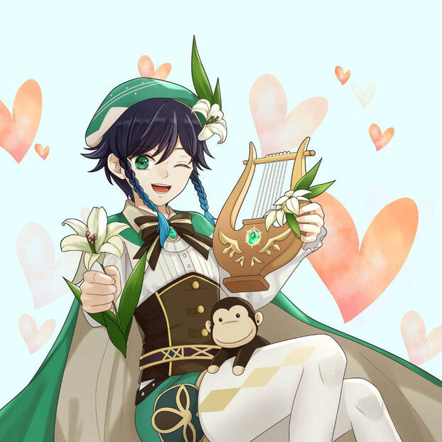 "Hiii, I’m Ceylon & I like ducks! Venti main all the way—I’ve been a Venti simp since his first banner 😩 Super excited for this zine since the possibilities of dynamics are endless, not to mention all the chaotic adventures & shenanigans that the cast of OP & Genshin are sure to get into together!"